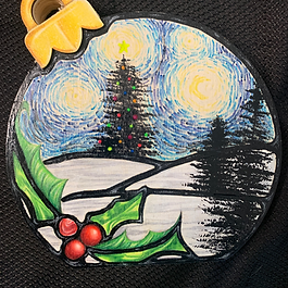 Mixed media "Starry Night" snow globe with stained glass and realism components. Colored Pencil, Crayon, and Acrylic Paint